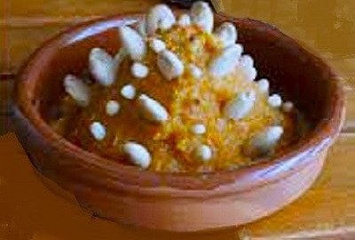 Primero: Se asa la calabaza, se pela y se quitan las pepitas y se reserva de un día para otro en una escurridera.